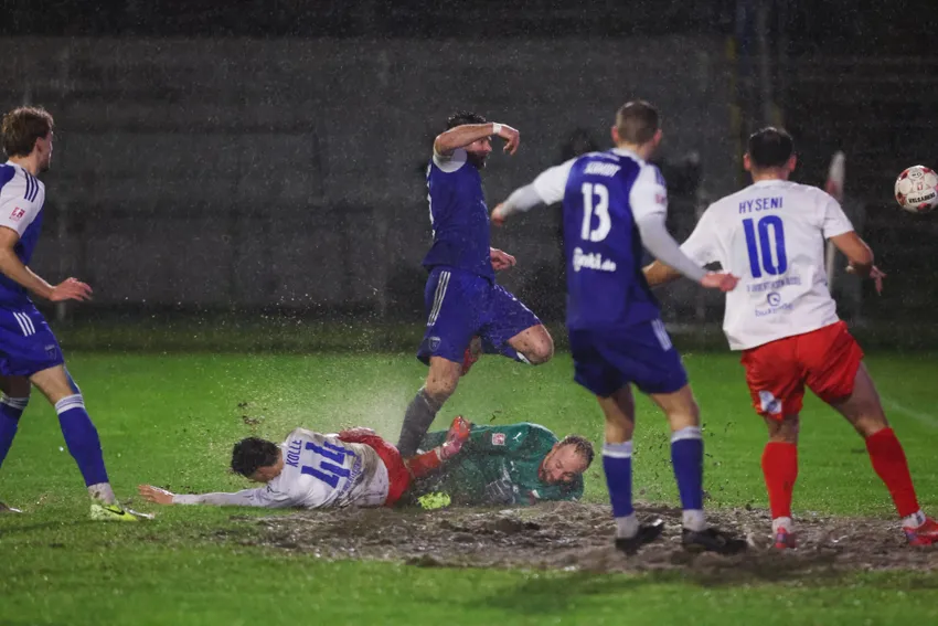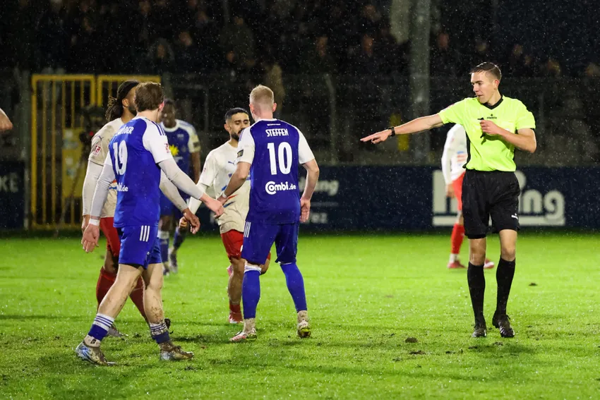 In der Schlussminute war Emdens torgefährlichster Abwehrspieler nah dran an Treffer Nummer fünf. Nach einem hohen Ball von Schiller und anschließender Vorlage von Theo Schröder traf Felix Göttlicher die Kugel im matschigen Fünfmeterraum nicht richtig (90.). Schwierigkeiten mit dem seifigen Untergrund hatte auch Tjorve Mohr auf der Gegenseite: Sein Schussversuch kullerte nur in Richtung Tor und war somit kein Problem für Kickers-Keeper Isaak Djokovic (90.+3).