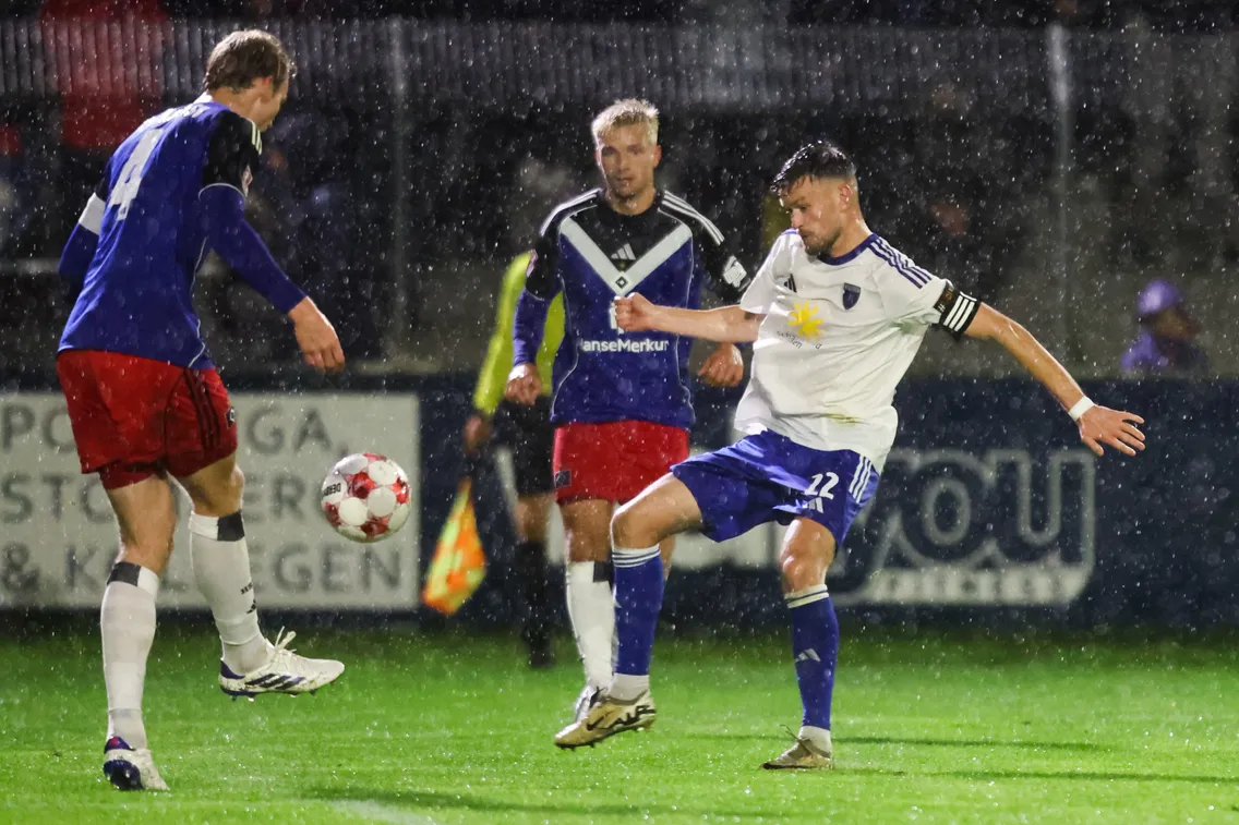 Acht Minuten später folgte eine unglückliche Aktion, die Folgen haben sollte: Michael Igwe rutschte mit dem Standbein weg und räumte HSV-Profi Noah Katterbach im Mittelfeld ab. Schiedsrichter Rosenhagen zögerte noch kurz, zeigte dem bereits verwarnten Emder dann aber doch Gelb-Rot (55.). „Ich habe die Szene nicht gesehen und kann nichts dazu sagen“, so Unger. „Wir hatten schon in der Pause diskutiert, ob wir reagieren und Michael auswechseln. Trotzdem muss man von Spielern auf diesem Niveau erwarten, dass sie nicht in so eine Situation geraten.“