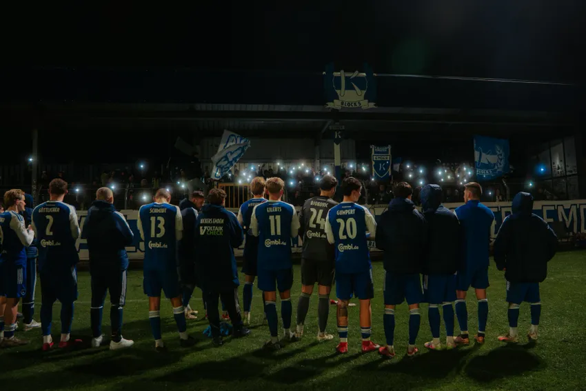 Die Mannschaft verabschiedete sich nach dem letzten Spiel des Jahres von den Kickers-Fans. Foto: Tim Leifeld